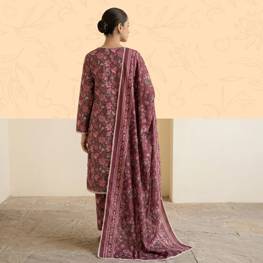 3 Piece Printed Lawn from Aleena Vol 1 by MDL Textile brings together soft tones, elegant prints, and premium-quality fabric. Designed for women who value comfort and sophistication, this outfit is perfect for a graceful everyday look.