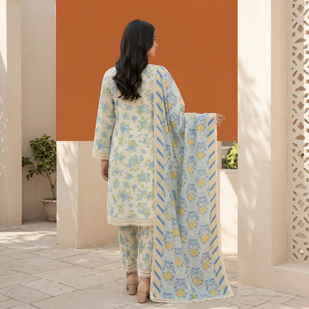 - Dupatta: Printed Lawn Dupatta with intricate border design