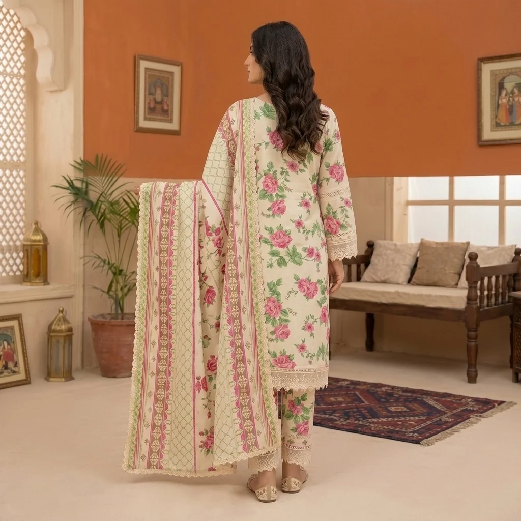 3 Piece Printed Lawn from Aleena Vol 1 by MDL Textile brings together soft tones, elegant prints, and premium-quality fabric. Designed for women who value comfort and sophistication, this outfit is perfect for a graceful everyday look.