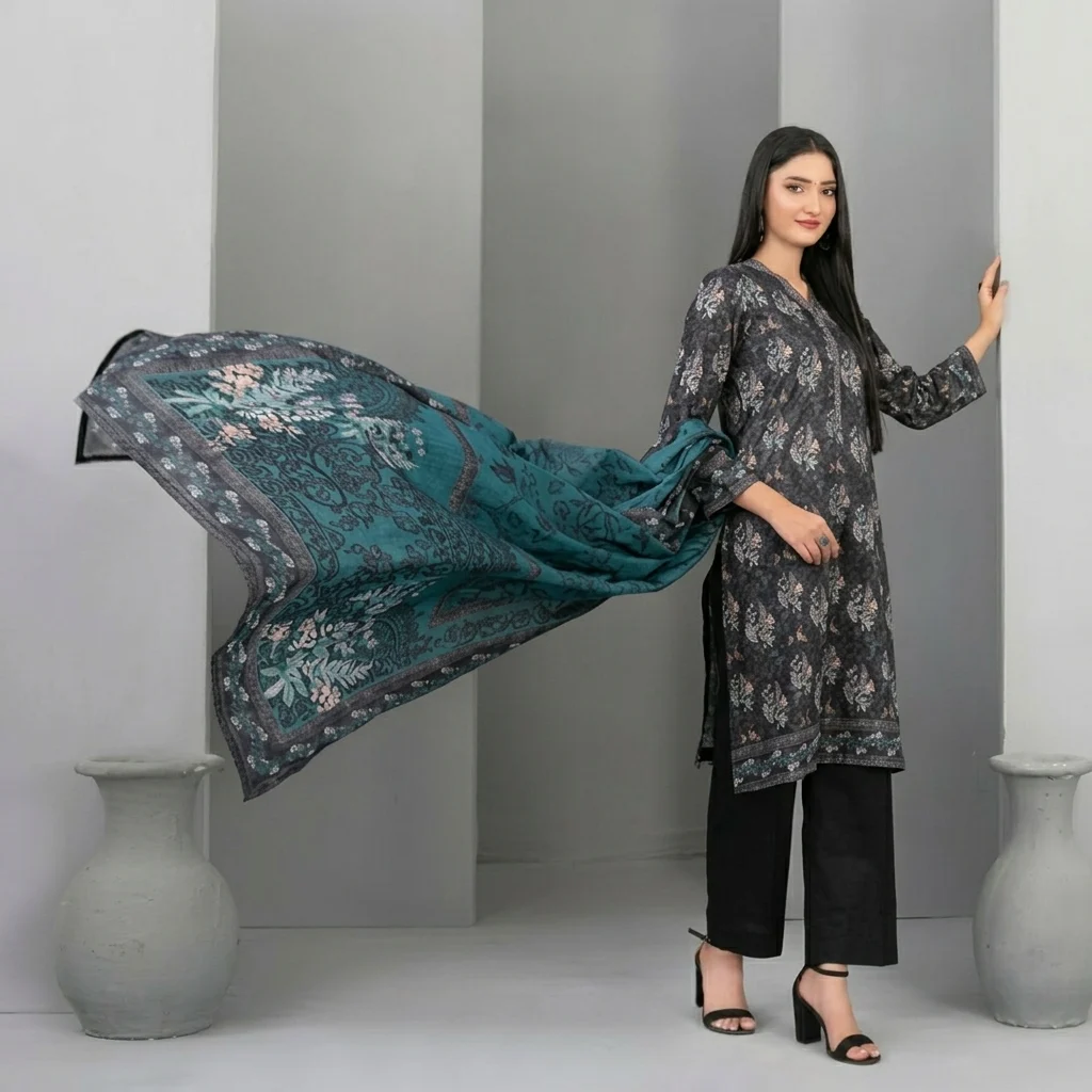 - Exclusive Digital Printed Monochrome Lawn Dupatta